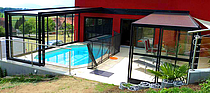 Questo modello di copertura offre accesso diretto alla piscina senza dover uscire in giardino. Questa è la soluzione ideale per le piscine situate in prossimità dell'abitazione. Molto maneggevole e pratica grazie allo scorrimento su ruote, che consente di aprire e chiudere facilmente la copertura.